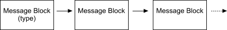 The following illustration shows that a STREAMS message consists of one or more linked message blocks that are attached to the first message block of the same message.